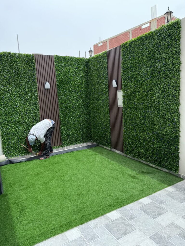 ويشرف على تركيب العشب الجداري فريق فني متخصص يمتلك خبرة واسعة في تنفيذ الأعمال بدقة واحترافية، مع الالتزام بأعلى معايير الجودة والسلامة. حيث يتم قياس المساحات بعناية، واختيار الطريقة الأنسب للتركيب، لضمان ثبات العشب ومظهره الجمالي المتناسق.